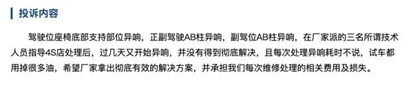 而且,还有不少车主反映,维修后车辆的异响问题暂时解决,但没过几天后,车辆又重新开始异响,维修的作用有限。