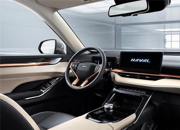内饰也是哈弗全新H6的一大亮点,新车一改此前中规中矩的内饰造型,运用了玫瑰金、钢琴烤漆与浅色蒙皮的颜色搭配,豪华氛围更加浓厚。中控T型台区域,新车采用了10.25英寸全液晶仪表盘与12.3英寸中控大屏的流行搭配,并首次启用电子旋钮换挡,进一步提升车内科技感,同时首次在该车型上提供抬头显示(HUD)这一较高级的配置。