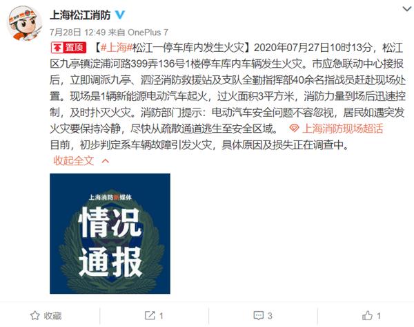 近日,据上海松江消防对外发布的消息显示,7月27日10时13分,松江区九亭镇一幢别墅内的车库,一辆奇瑞eQ1电动车发生了起火事故。