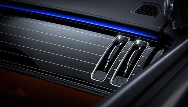 内饰用料方面,大面积钢琴烤漆和镀铬装饰的运用使人眼前一亮,出风口的造型也进行了重新的设计,新车在中控屏幕上方设置了四个矩形空调出风口,而中控两侧分别设置了两个长条形出风口,并点缀镀铬装饰。相比现款车型营造的豪华氛围,全新S级的内饰更多了几分科技感和时尚感。