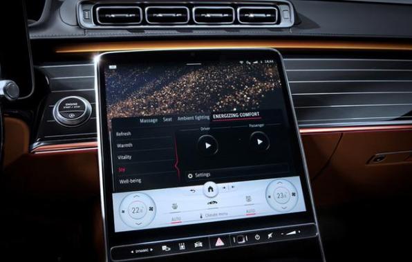 车内,全新一代S级放弃了“双联大屏”设计,启用了“五屏联动”的设计,中控开创性的用上了斜置大屏设计,取消了此前大量的物理按键,空调系统等功能也被集成在这块屏幕中,同时搭载了MBUX信息娱乐系统,支持车内触摸、手势、语音识别、AR增强现实技术以及多屏幕人车互联等功能。