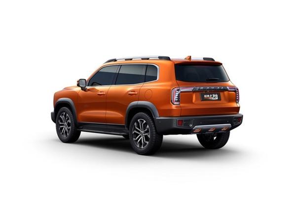 车侧的腰线笔直粗壮,整个C柱部分也是十分垂直,很符合其越野车的定位,同时车顶还设有行李架,使新车的实用性也大大增强。车身尾部并没有使用与车头相近的圆形设计,采用了“倒L”样式的全新尾灯造型,下方搭配了和前脸相同的深色保险杠,同时中部银色防刮板,整体造型较为时尚、个性。