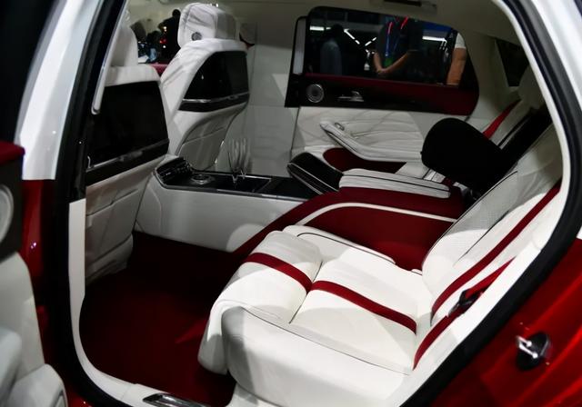 重头戏是后排,红旗H9+采用2+2式行政座椅布局,两把独立后排座椅的设计奢华,将提供更加豪华、宽裕的乘坐体验,配置也很丰富,前排座椅背面是两块曲面屏大屏幕。参考普通版红旗H9的配置,后排将提供大仰角“零重力”座椅,并配备车舱主动降噪和车内香氛系统。