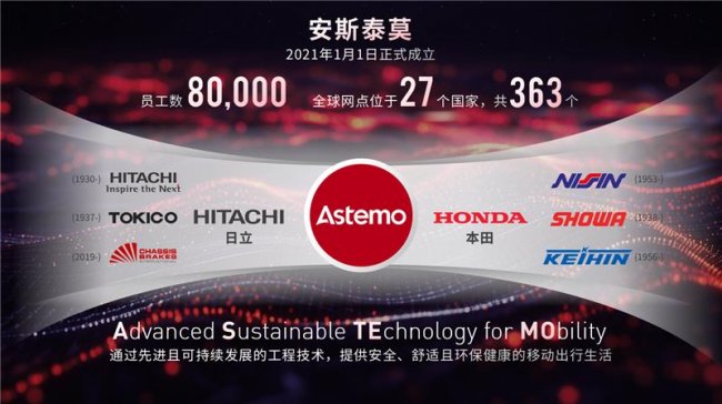 安斯泰莫总部位于日本东京,是由日立制作所、本田技研工业株式会社及日本产业资本投资公司共同投资组建的合资企业。作为汽车行业全球领先的超级供应商,安斯泰莫在全球拥有8万名员工,业务遍及美洲、亚洲、中国、欧洲及日本本土。公司下设电气化事业本部、四轮事业本部及二轮事业本部,致力于汽车零部件以及交通运输和工业机械系统的研发、制造、销售与技术服务。安斯泰莫始终以构建可持续发展社会为己任,持续提升企业价值。
